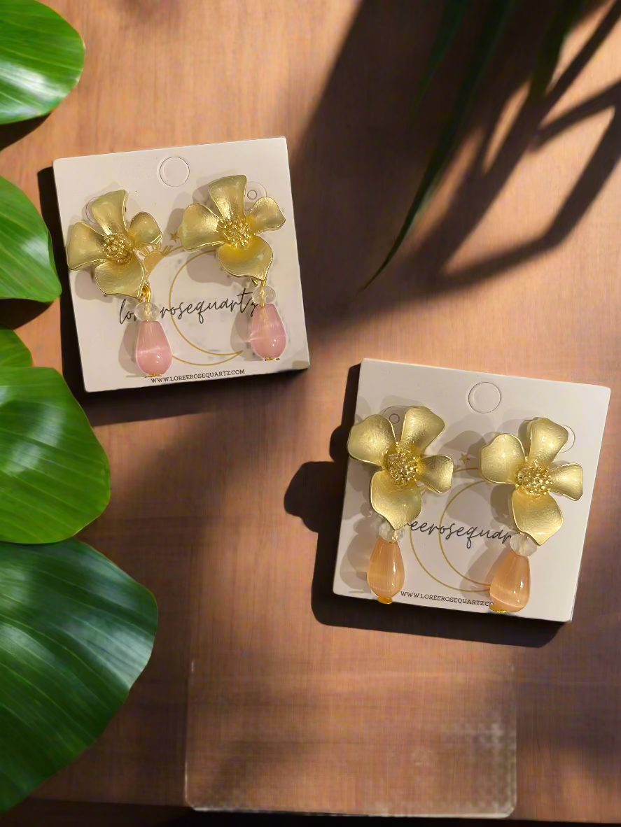 Add a splash of beauty to any outfit with these crafted Sampaguita Studs. These earrings feature the mesmerizing pink hues of the cat eye's selenite and delicate sampaguita stud. Wear them to instantly elevate any look!
