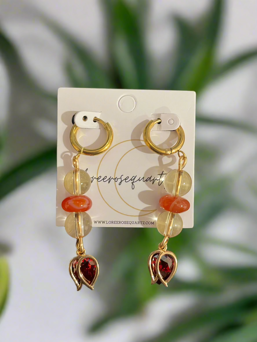 Add a regal touch to your style with the Citrine & Carnelian Red Rose earrings. With a princess-themed design and red rose charm, these earrings are sure to make a statement. Perfect for any occasion, you'll feel like royalty wearing them!.