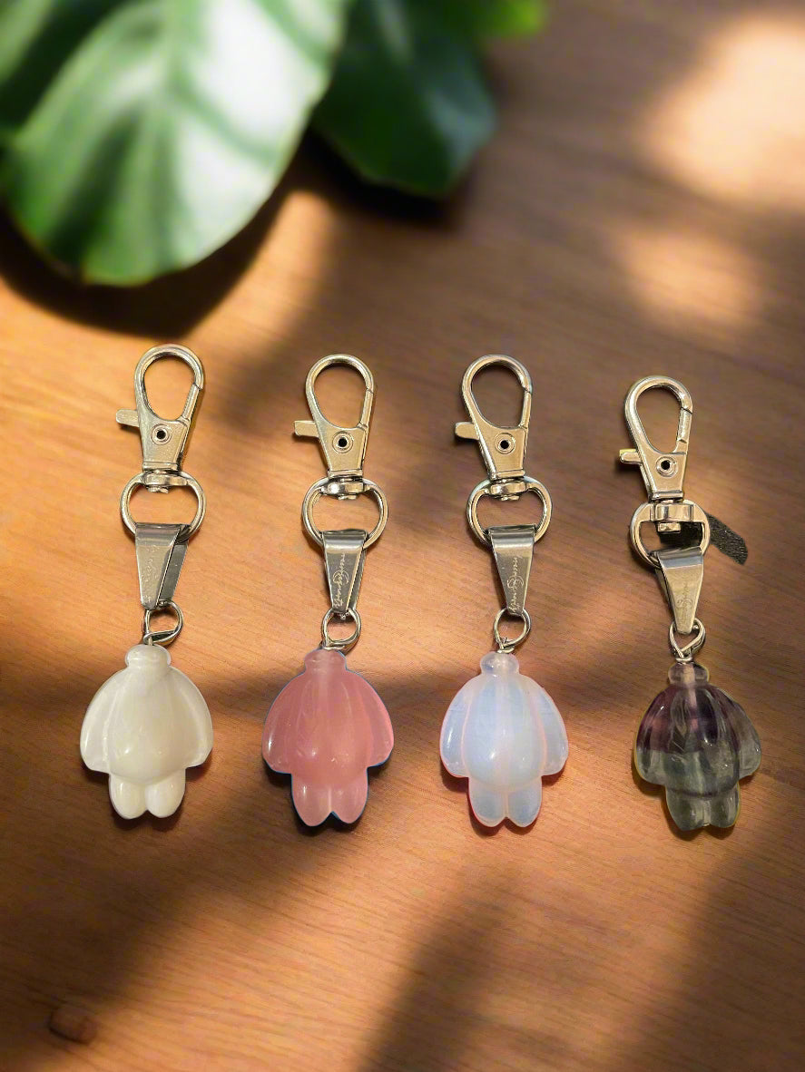 Each crystal keychain is different - if you have any special requests such as less marbling on the howlite, please let me know or else these are going to be chosen intuitively.