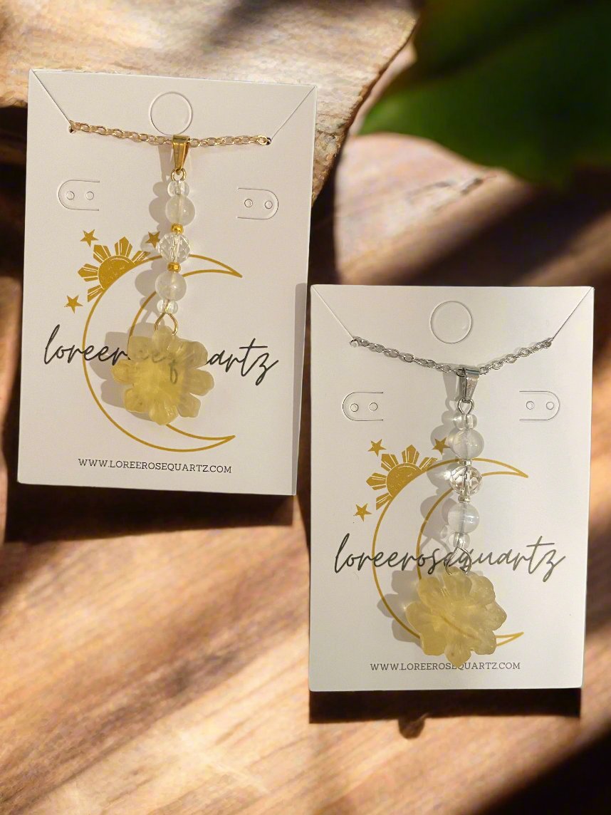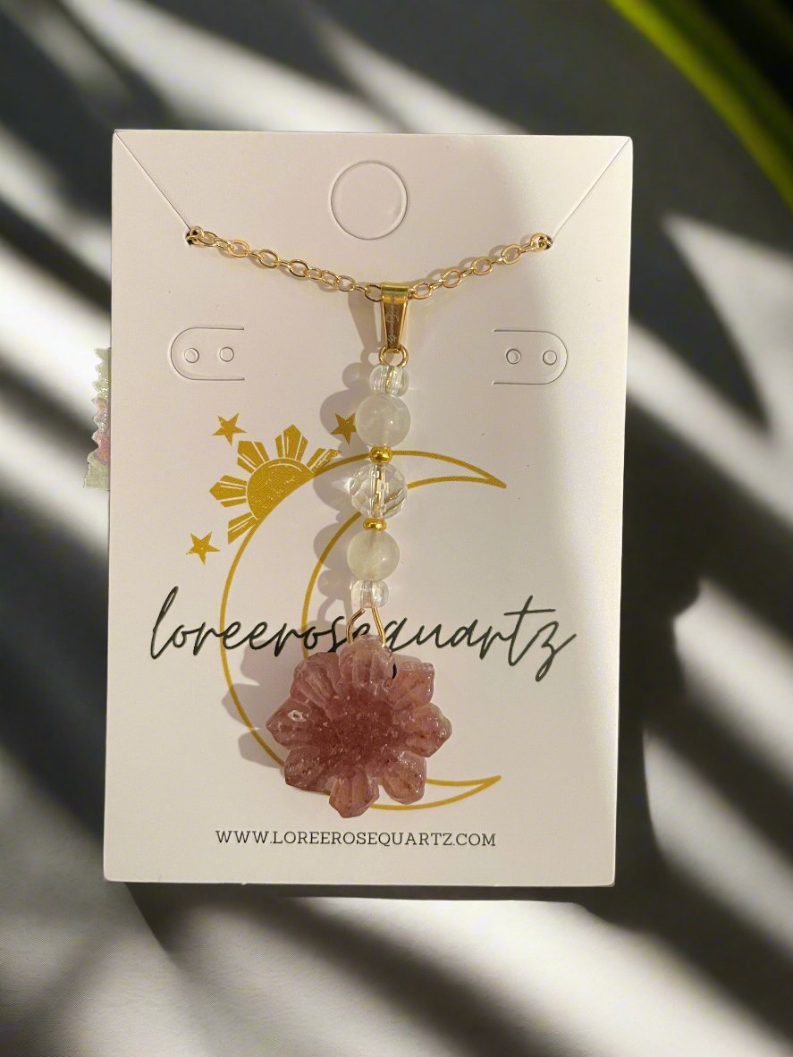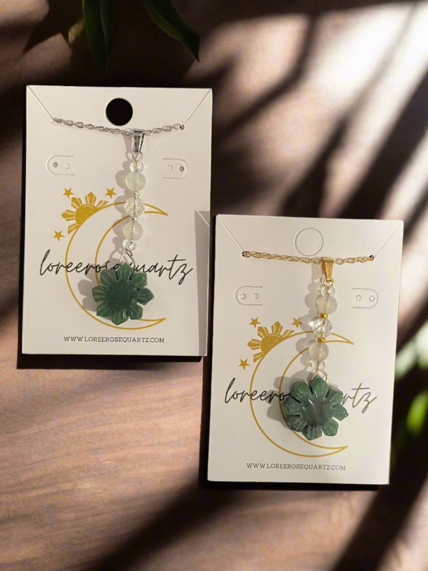 Mini Araw with Rainbow Moonstone & Clear Quartz Necklace