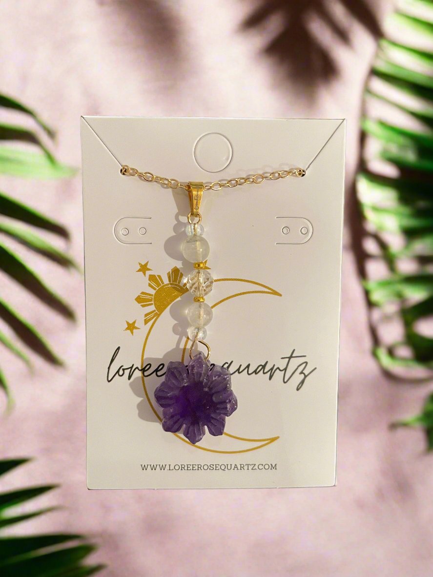 *For ALL crystals esp. purple mica, gray agate, flower agate, and trolleite- these will look different as the crystal varies with each hibiscus so it will look different than what is on the preview. If you have a specific request on how the crystal will look like, please message me prior to purchase - not all requests can be satisfied.