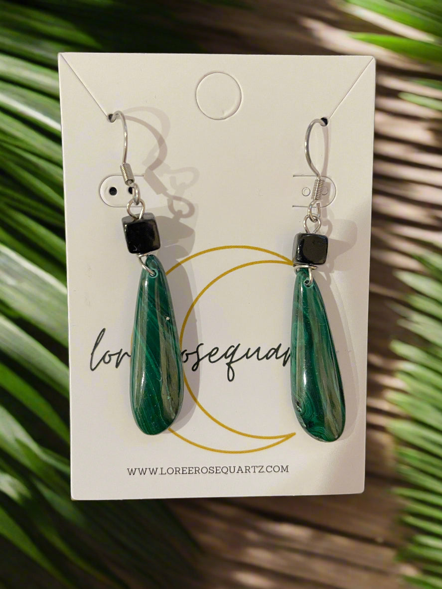 Express your anime style with this crystal earrings that is inspired by the iconic checkered haori with malachite and black agate. Now you can also be a part of the corps.
